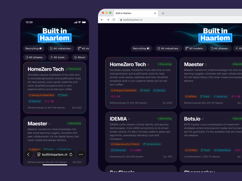 I kicked off this project after countless dead-end Google quests left me wondering why Haarlem’s tech pulse felt hidden behind ivy-clad facades. Our canals have swelled with Amsterdam-bred coders, designers and engineers, yet the companies they work at remained a mystery.